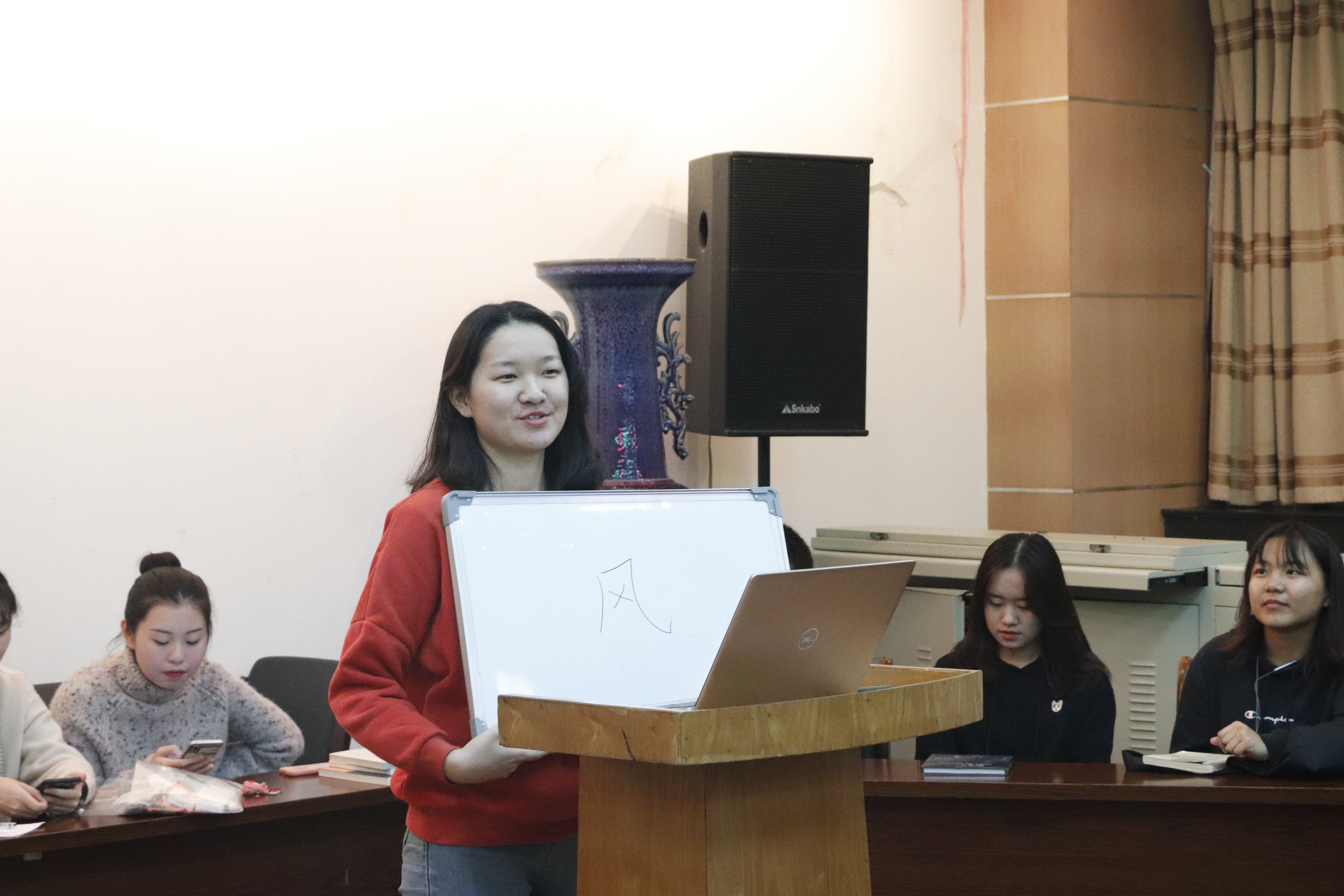 首先,主持人介绍了此次交流会的目的和基本流程。随后,同学们一一进行自我介绍,相互认识了解。为进一步活跃气氛,熟悉彼此,大家开始进行飞花令和你画我猜的文学游戏。飞花令题为“风、花、雪、月、酒”,大家文思泉涌,竞相抢答。你画我猜环节分为两组PK进行,竞猜内容为词语、成语和诗句。小组成员间合作默契,进展迅速,不分伯仲。