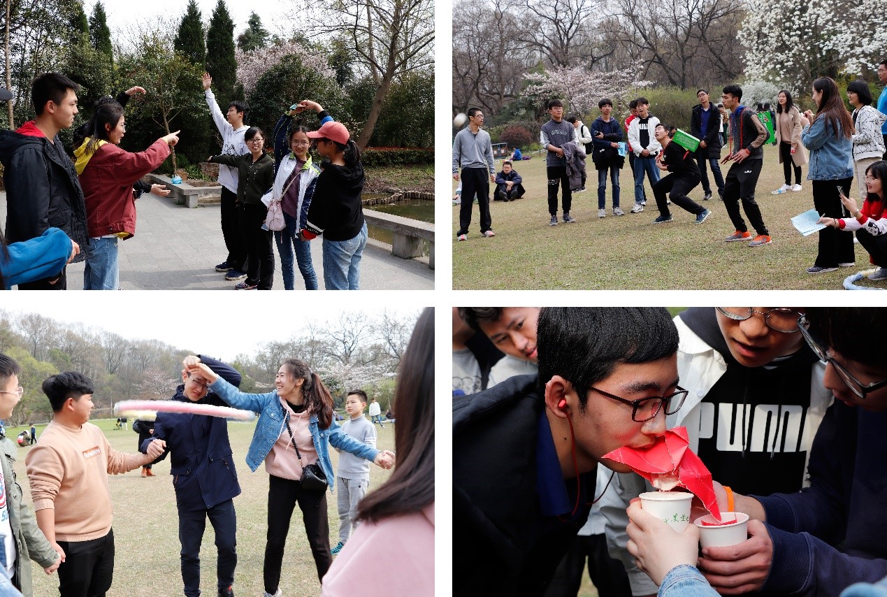 全体成员以抽扑克牌的形式分好小组,以学校逸夫楼为起点,根据不同颜色路线图为指向,最终到达活动终点流徽榭。各组团结合作猜出景点字谜,并在该景点处按照要求拍摄合照,一路上同学们增进对彼此的了解并完成指定任务。在全体成员到达终点后,又以小组为单位进行积分制流徽榭游戏。通过抛绣球、一圈到底、面粉搬运工等丰富多彩的游戏,各小组成员充分发挥了协作能力,使活动氛围达到高潮。最后汇总游戏积分,对同学们进行奖励。