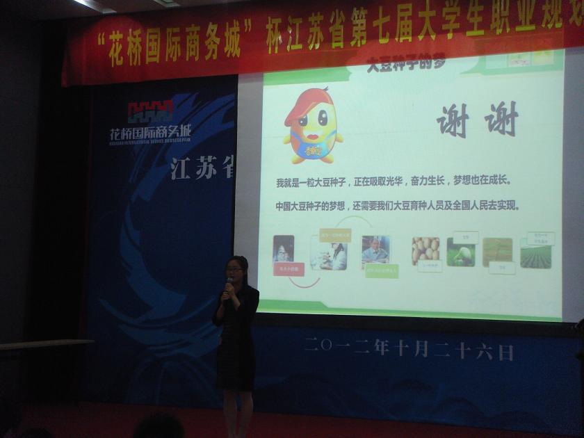 两位同学均从从自身分析、环境分析、社会分析、职业路径与调整等多个方面详述自己的职业生涯规划,道出了自己献身农业的激情。黄梦杭同学的职业规划目标是服务三农的农技工作者,有着服务三农的奉献热情,在决赛中表现突出。刘瑞君同学的职业规划是大豆种子的梦——大豆育种研究员,说出了自己对大豆的奉献之情,唤起了人们对中国大豆行业的忧患意识。