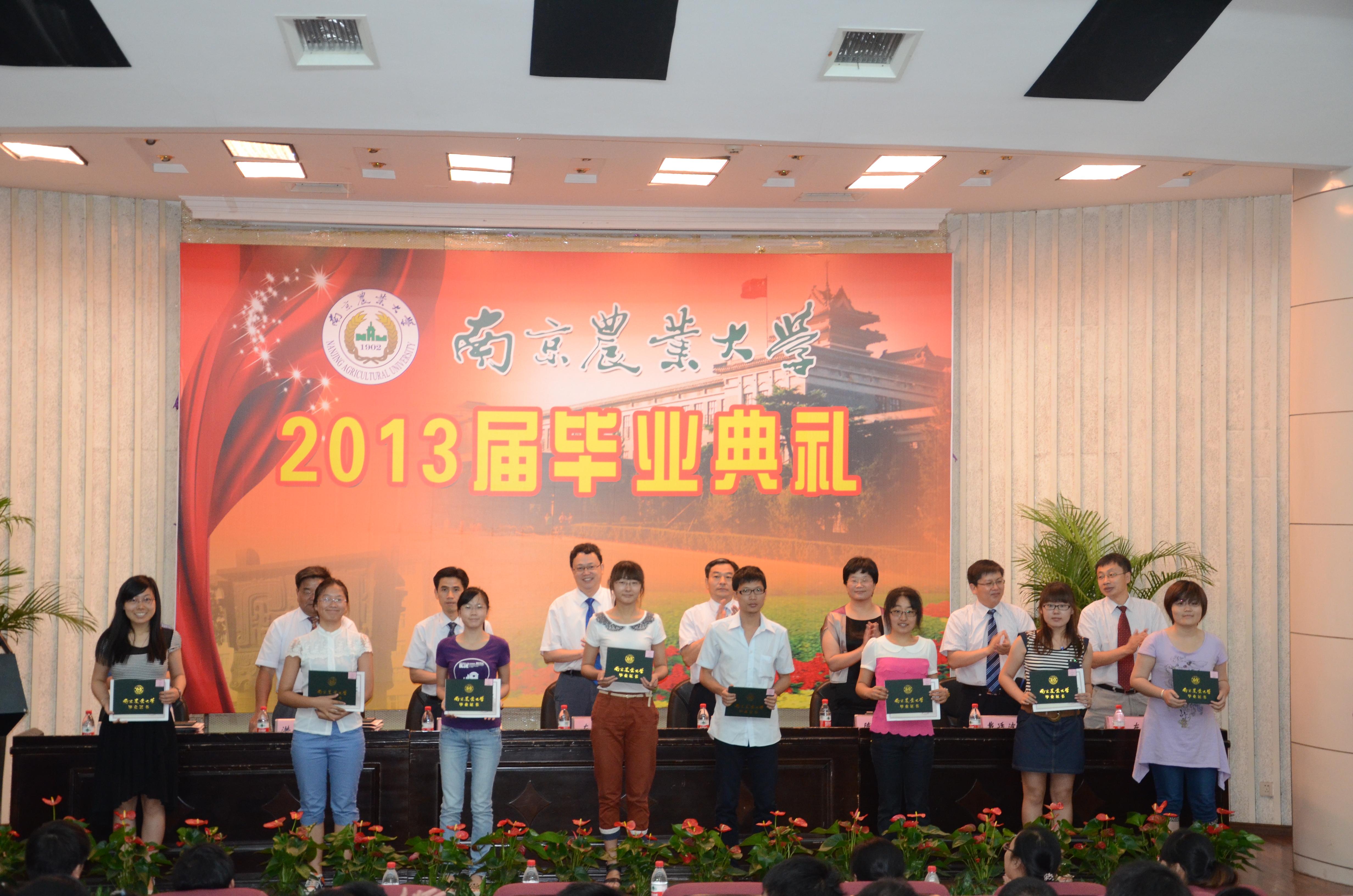 表彰完毕,在南农校歌的歌声中,各领导和来宾为ok138cn太阳集团2013届本科毕业生颁发了优秀证书和毕业证书。
